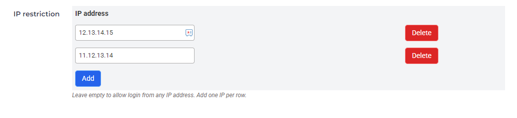 To prevent users to log in myFulfillment outside of your office / warehouse, you can restrict the IP addresses from which a user can log in from.