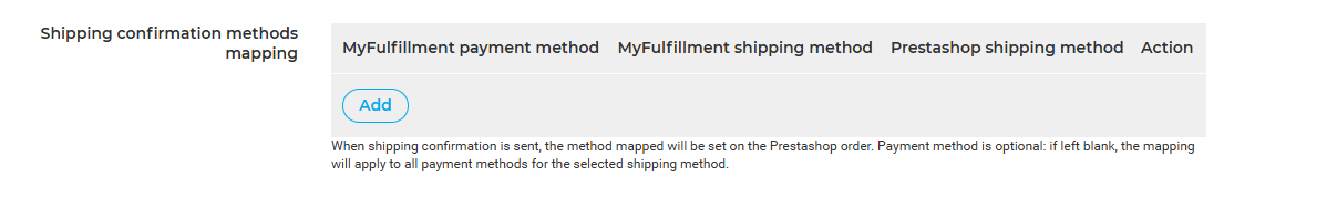 Once the option Update Prestashop shipping method is enabled, a mapping table will appear.