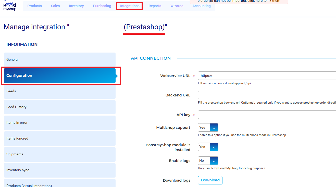 Navigate to Integration > PrestaShop > Configuration tab > Search for Shipping confirmation section, then activate the option "Update Prestashop shipping method"