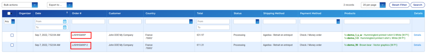 2) Once the order has been created as Split, the Order reference number will be appended with -2.