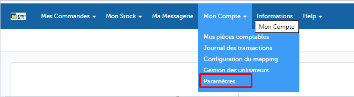 - Vous retrouverez le token en cliquant sur votre e-mail en haut à droite dans votre espace vendeur Mirakl, puis sur "Clé API" :